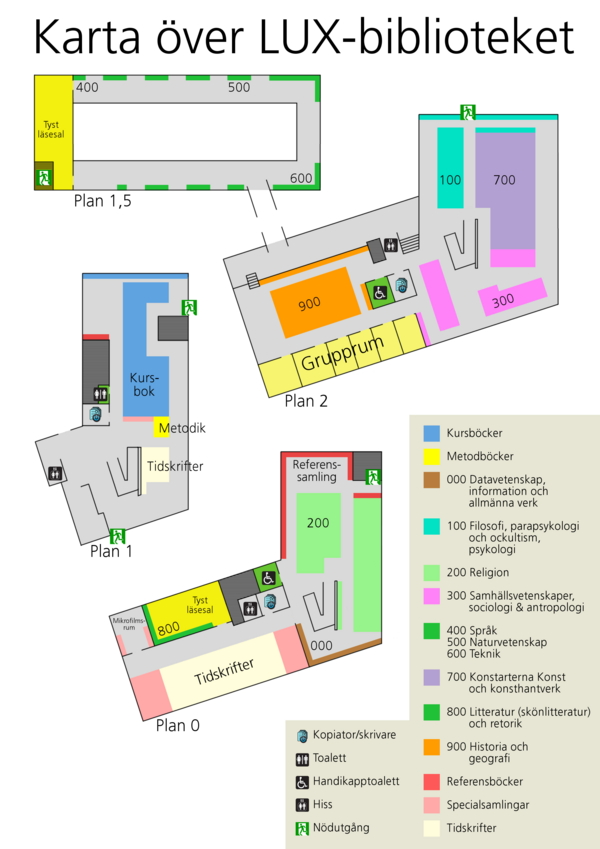 - På LUX-biblioteket finns hiss till samtliga våningsplan.